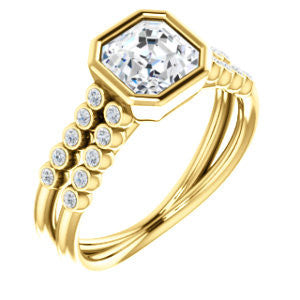 Cubic Zirconia Engagement Ring- The Rafaella (Customizable Bezel-set Asscher Cut Design with Round Bezel Accented Split Band)