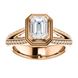 Cubic Zirconia Engagement Ring- The Reina (Customizable Ridged-Bevel Surrounded Radiant Cut with 3-sided Split-Pavé Band)