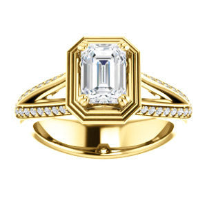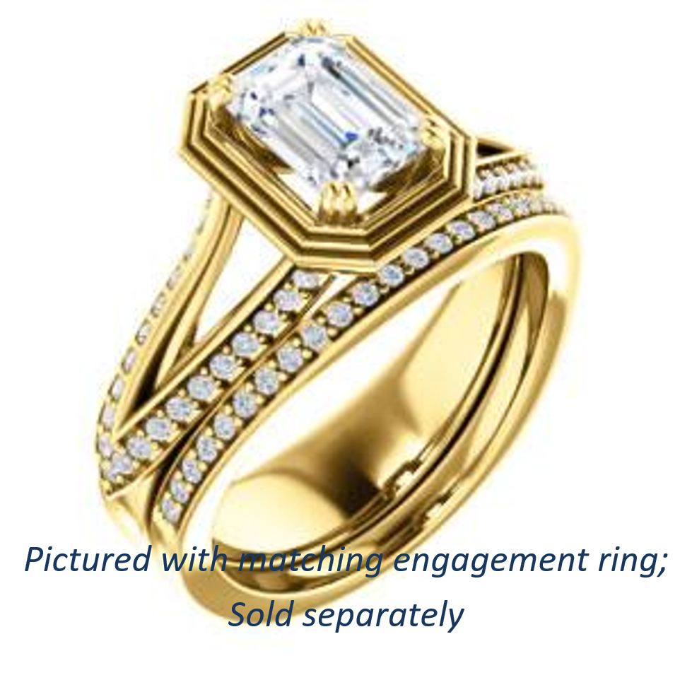 Center Stone Shape: Radiant Cut (as pictured with Emerald cut). See this customizable ring set with other available center stone shapes here: customize setting.
