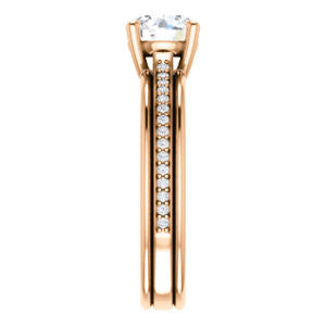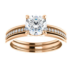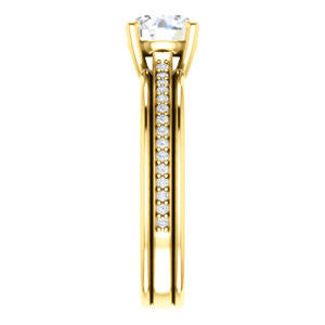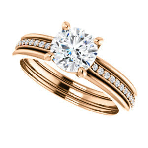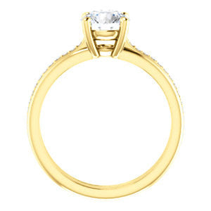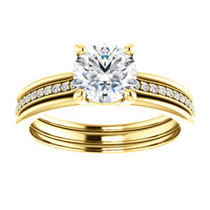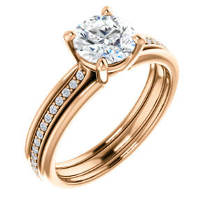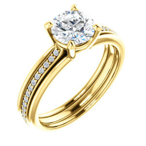 Center Stone Shape: Round Cut (as pictured). See this customizable ring set with other available center stone shapes here: customize setting.