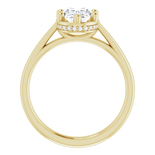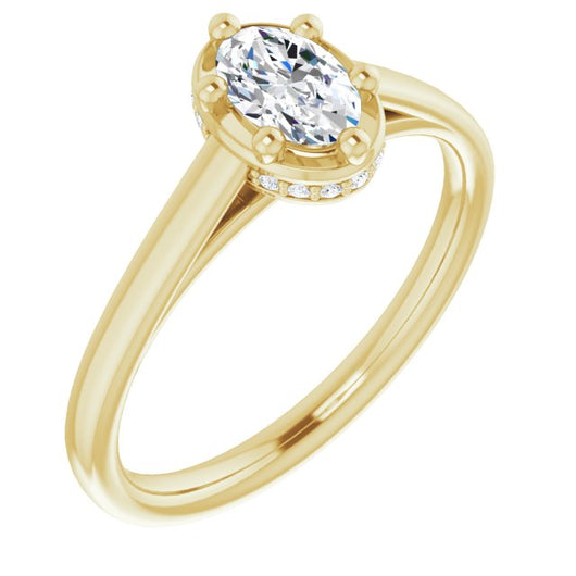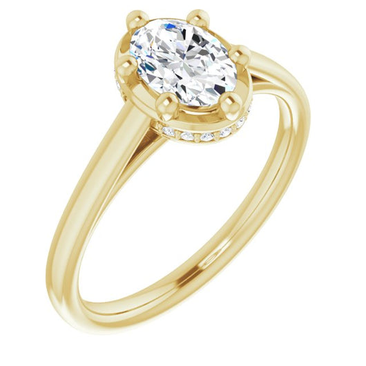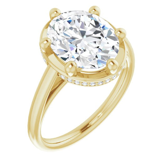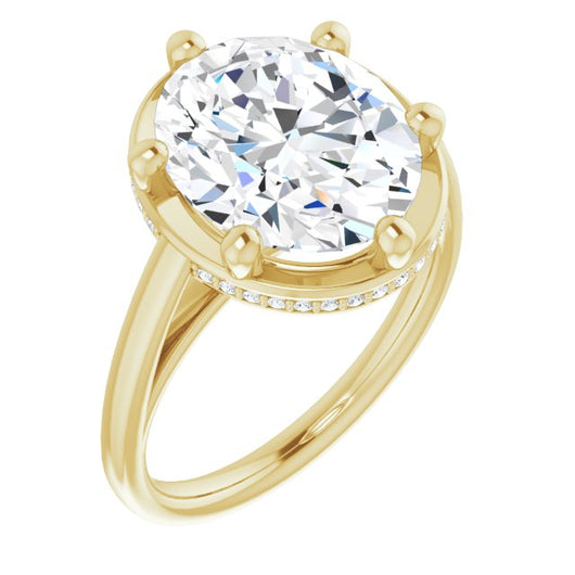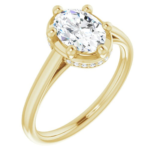 10K Yellow Gold Customizable Super-Cathedral Oval Cut Design with Hidden-stone Under-halo Trellis