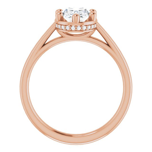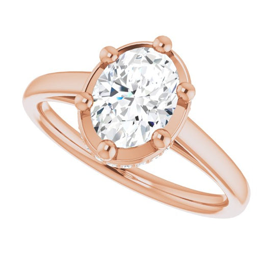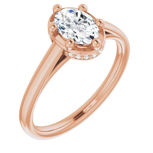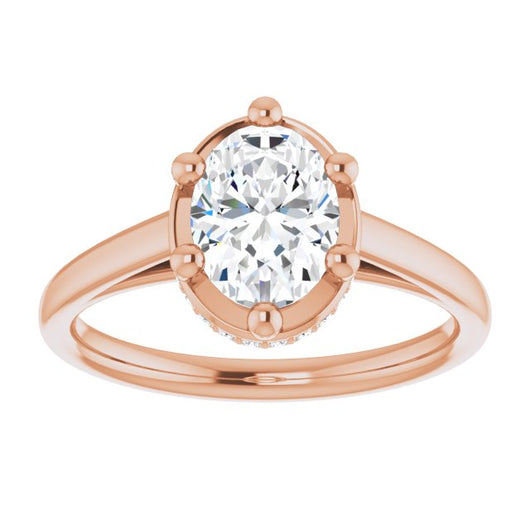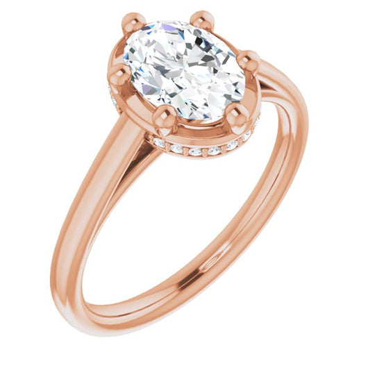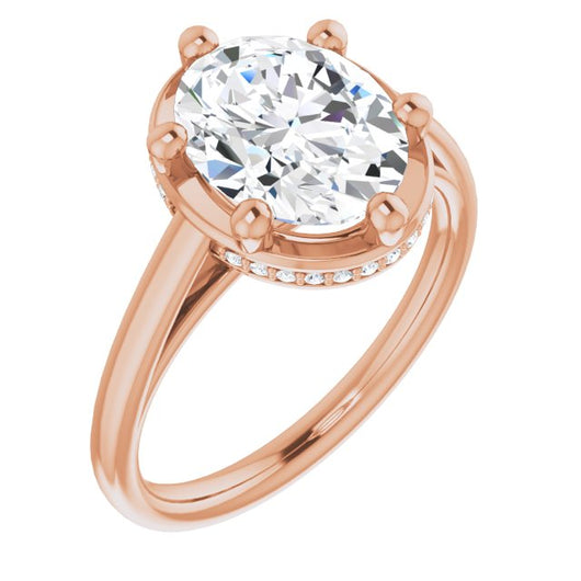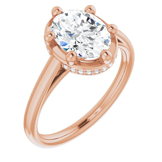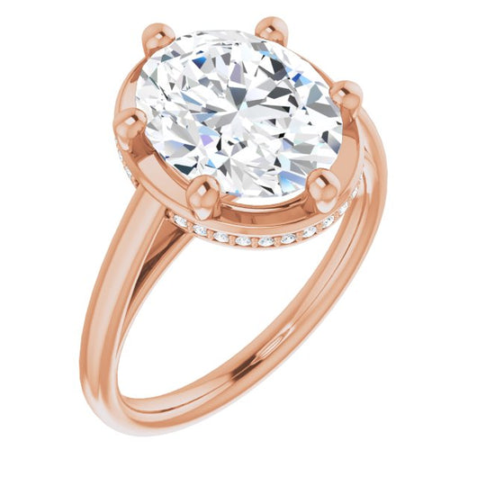 10K Rose Gold Customizable Super-Cathedral Oval Cut Design with Hidden-stone Under-halo Trellis