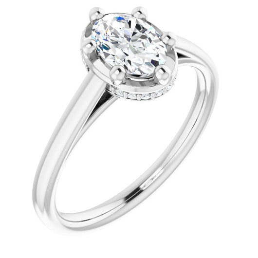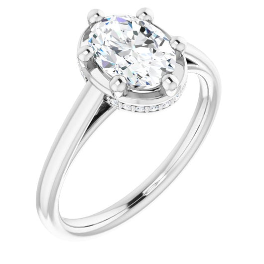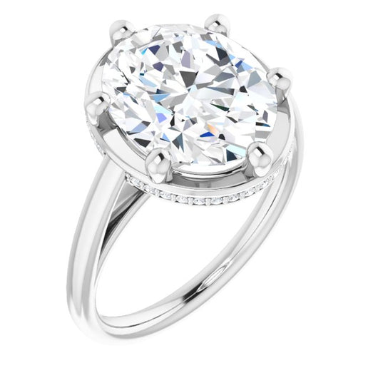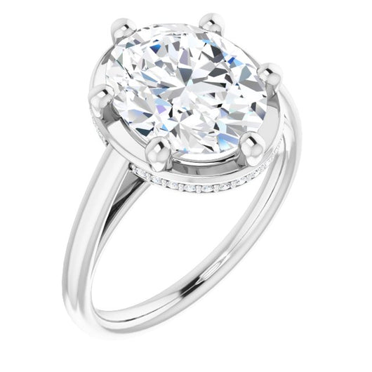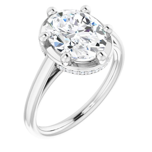 10K White Gold Customizable Super-Cathedral Oval Cut Design with Hidden-stone Under-halo Trellis