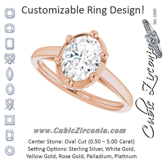 Cubic Zirconia Engagement Ring- The Romina Salomé (Customizable Super-Cathedral Oval Cut Design with Hidden-stone Under-halo Trellis)
