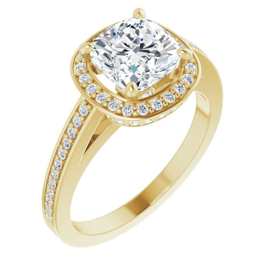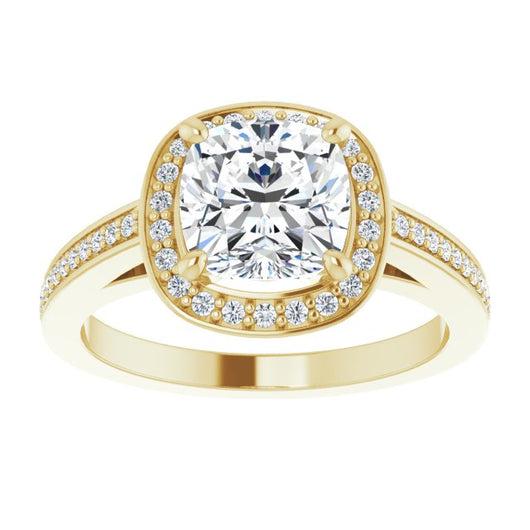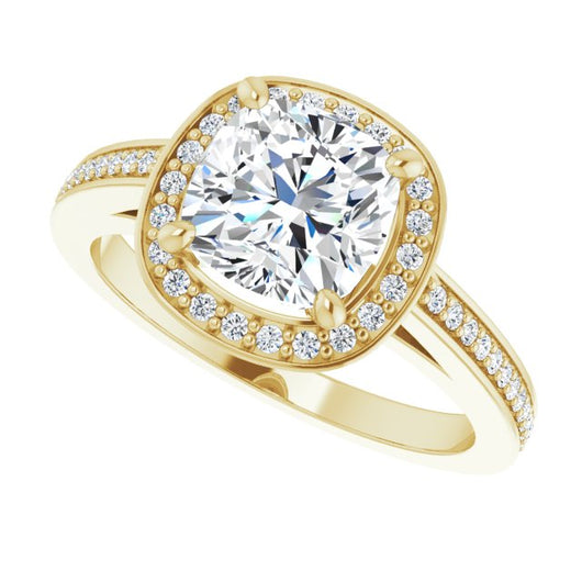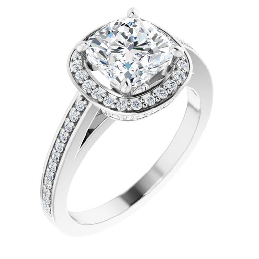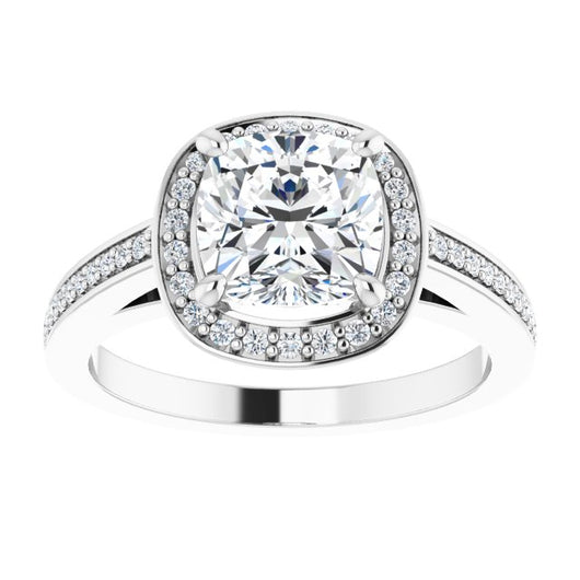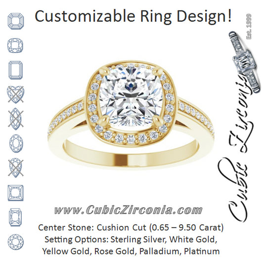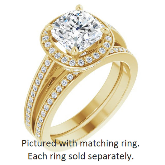 Center Stone Shape: Cushion Cut (as pictured). See this customizable ring set with other available center stone shapes here: customize setting.