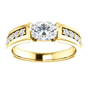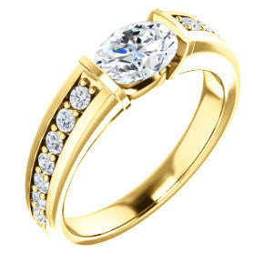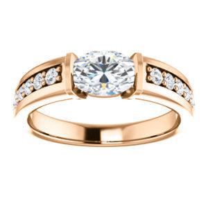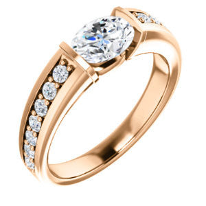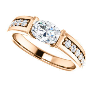 Cubic Zirconia Engagement Ring- The Rosemary (Customizable Oval Cut Tension Bar Set with Wide Channel/Prong Band)