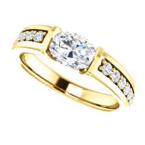 Center Stone Shape: Oval Cut (as pictured). See this customizable ring set with other available center stone shapes here: customize setting.