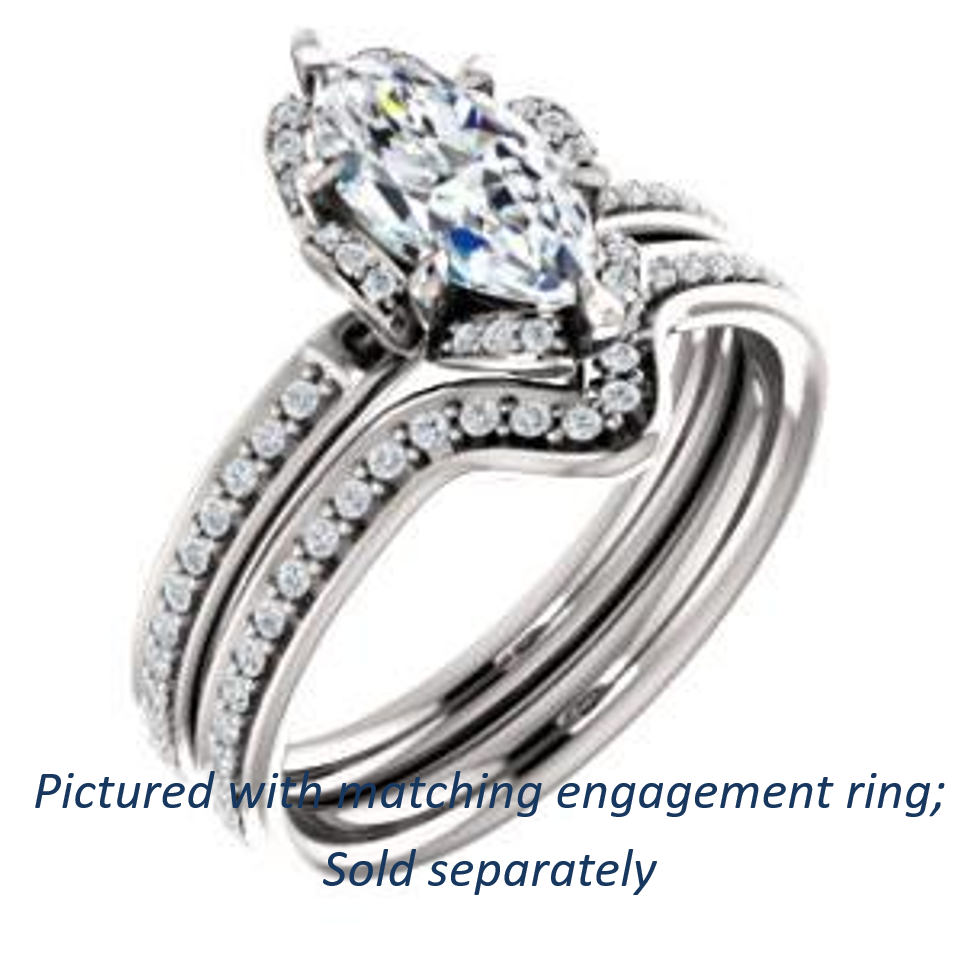 Center Stone Shape: Marquise Cut (as pictured). See this customizable ring set with other available center stone shapes here: customize setting.