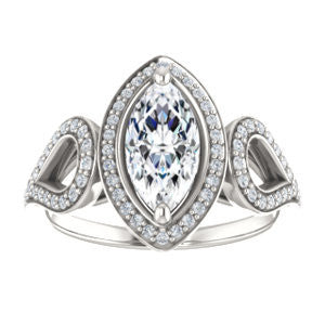 Cubic Zirconia Engagement Ring- The Roya (Customizable Cathedral-Halo Marquise Cut Design with Wide Ribbon-inspired Split-Pavé Band)