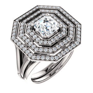 Cubic Zirconia Engagement Ring- The Roza (Customizable Triple-Halo Asscher Cut Design with Split Band and Knuckle Accents)