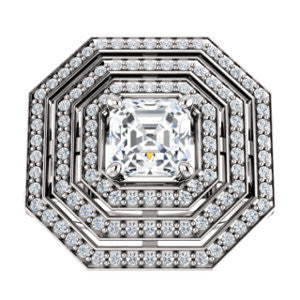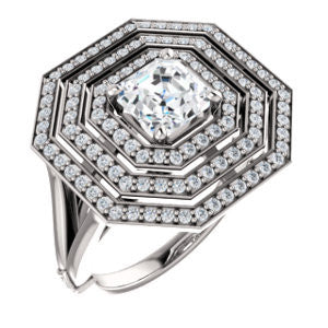 Center Stone Shape: Asscher Cut (as pictured). See this customizable ring set with other available center stone shapes here: customize setting.