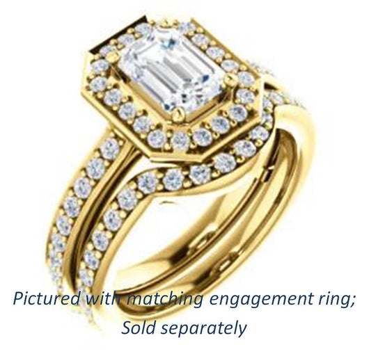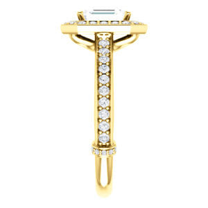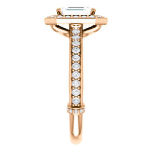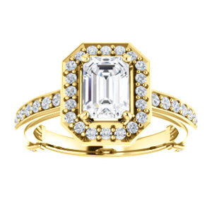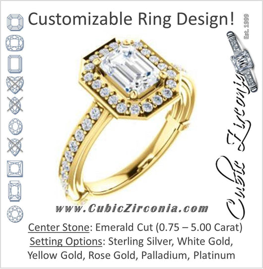 Cubic Zirconia Engagement Ring- The Sally (Customizable Halo-Emerald Cut Design with Round Side Knuckle and Pavé Band Accents)