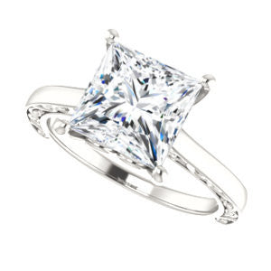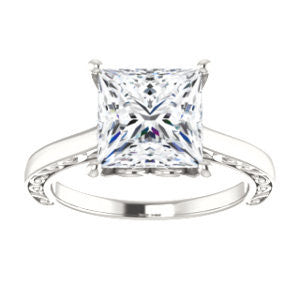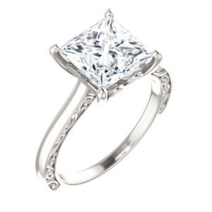 Cubic Zirconia Engagement Ring- The Salome (Customizable Princess Cut Solitaire featuring Band Filigree)