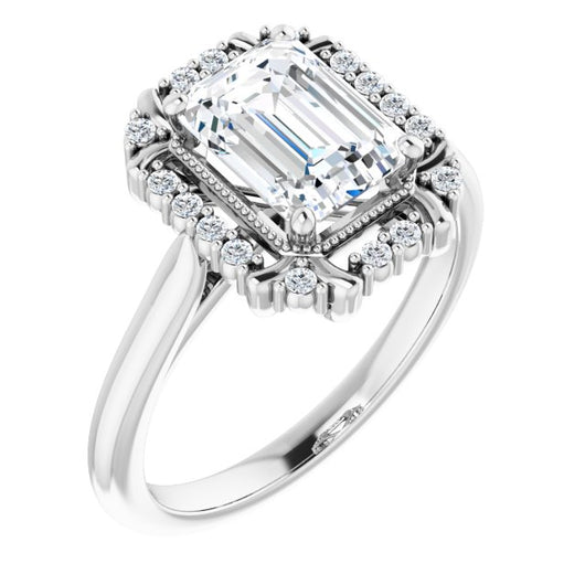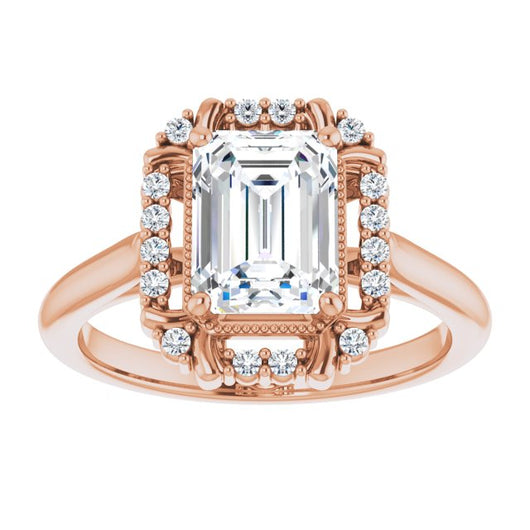 * Your ring’s total carat weight (TCW), band width, weight in grams, and/or number and size of accent, pavé, or halo stones will vary up or down depending on your choice of customizable center stone shape and size, precious metal type, and finger ring size via the drop-down options provided.