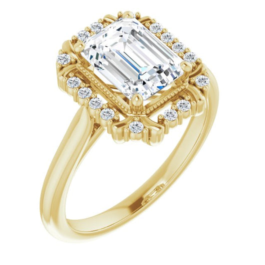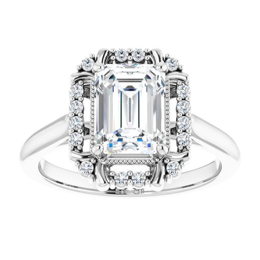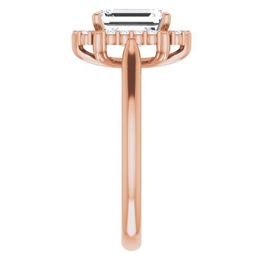 Center Stone Shape: Radiant Cut (as pictured with Emerald Cut). See this customizable ring set with other available center stone shapes here: customize setting.