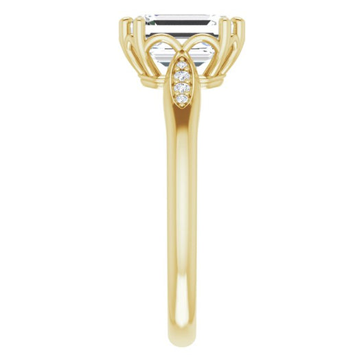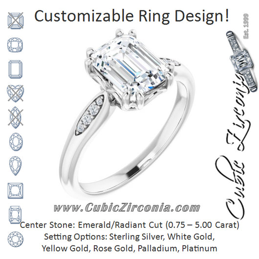Center Stone Shape: Emerald Cut (as pictured). See this customizable ring set with other available center stone shapes here: customize setting.