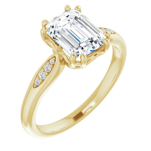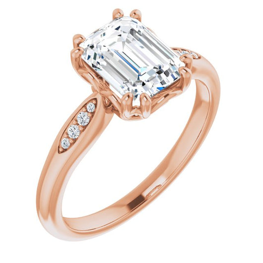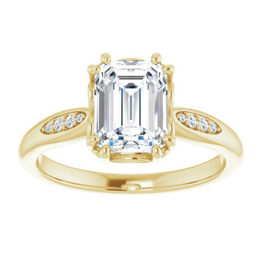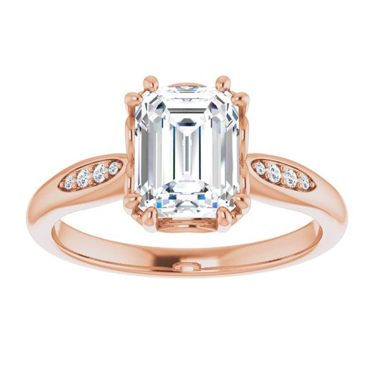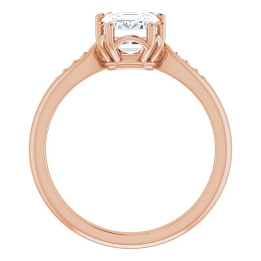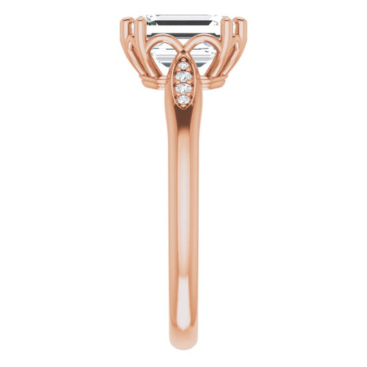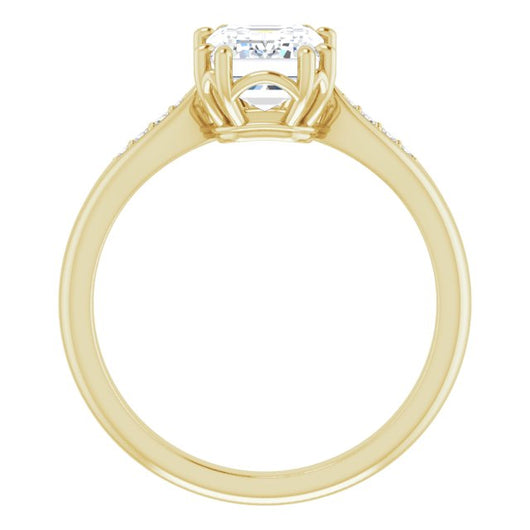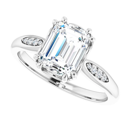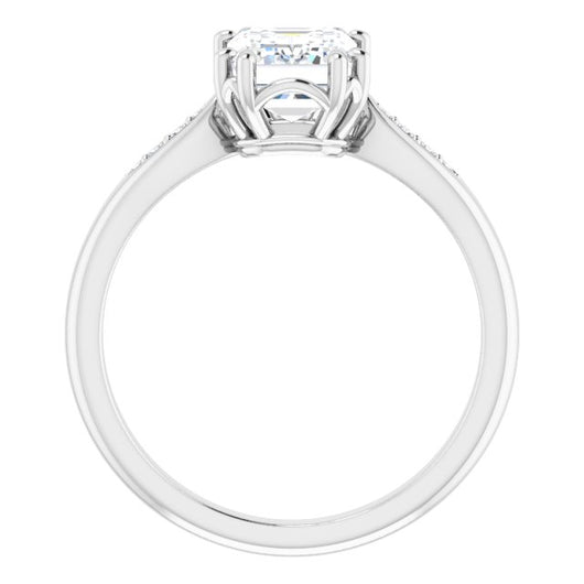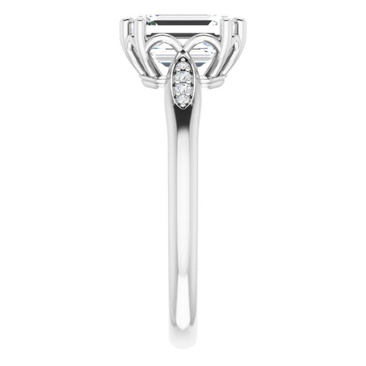Center Stone Shape: Radiant Cut (as pictured with Emerald Cut). See this customizable ring set with other available center stone shapes here: customize setting.