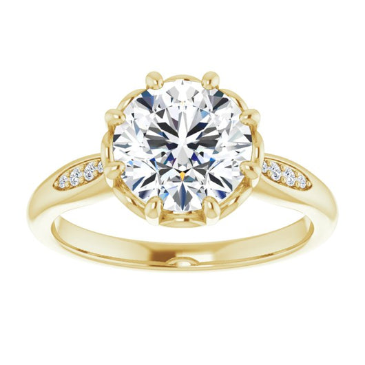Center Stone Shape: Round Cut (as pictured). See this customizable ring set with other available center stone shapes here: customize setting.
