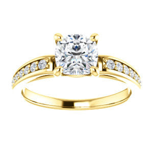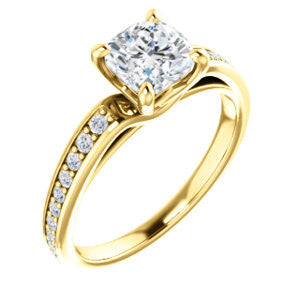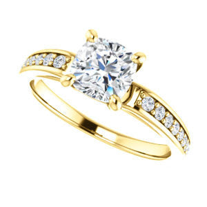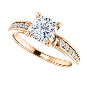 Center Stone Shape: Cushion Cut (as pictured). See this customizable ring set with other available center stone shapes here: customize setting.