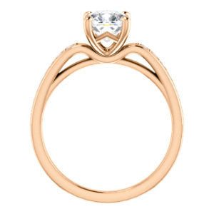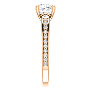 Something is missing inside this product page. Words have never been difficult for us. We decided we’re going to mostly let the picture speak for The Sashalle engagement ring. That’s because when we popped the tab on a Mexican Leon dark lager and thought “what the hell should we say about this ring?” we couldn't channel anything but a big blank. It’s got a lot of personality, this ring...but WHOSE personality? So go ahead and enjoy the pictures plural, as we provide one from multiple different angles where you can see the twenty-two (22)* stone pavé band and the raised cathedral setting with decorative trellis underneath.
