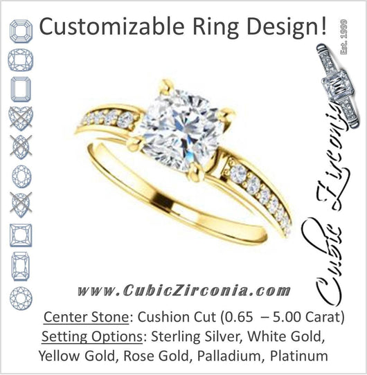 Cubic Zirconia Engagement Ring- The Sashalle (Customizable Cathedral-Raised Cushion Cut Design with Tapered Pavé Band)