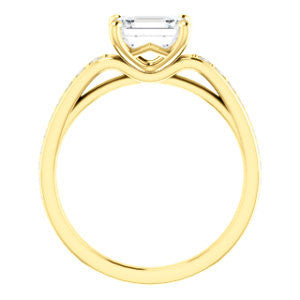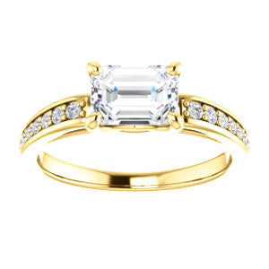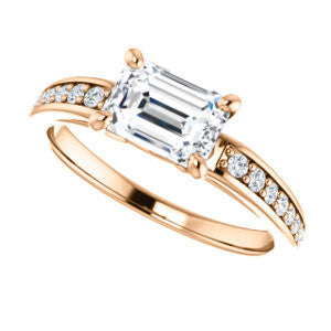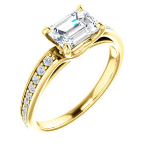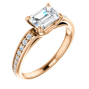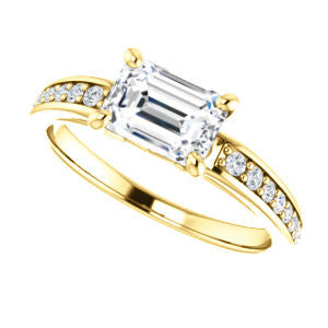 Center Stone Shape: Radiant Cut (as pictured with Emerald Cut). See this customizable ring set with other available center stone shapes here: customize setting.