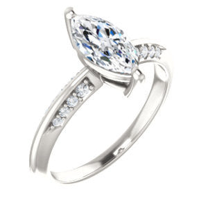 Cubic Zirconia Engagement Ring- The Savannah (Customizable Marquise Cut Artisan Design with Knife-Edged, Inset-Accent 3-sided Band)