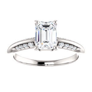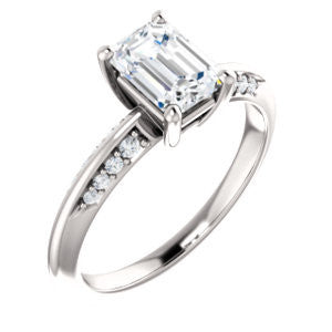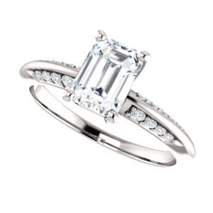 Center Stone Shape: Radiant Cut (as pictured with Emerald cut). See this customizable ring set with other available center stone shapes here: customize setting.