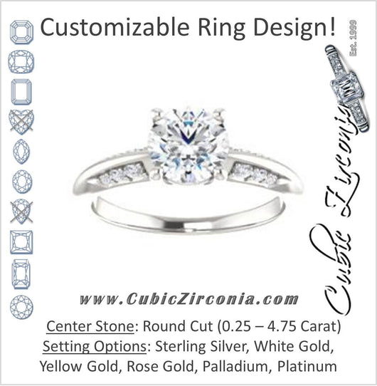 Side Stone(s): Total (16) 5A Cubic Zirconia side stones (4 Round 1.40 mm Prong Setting, 4 Round 1.30 mm Prong Setting, 4 Round 1.20 mm Prong Setting, 4 Round 1.10 mm Prong Setting)*