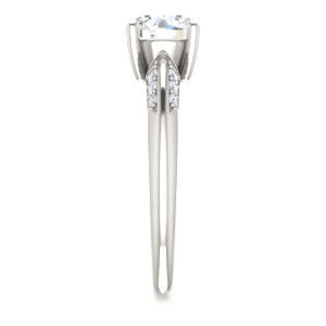 Cubic Zirconia Engagement Ring- The Savannah (Customizable Round Cut Artisan Design with Knife-Edged, Inset-Accent 3-sided Band)