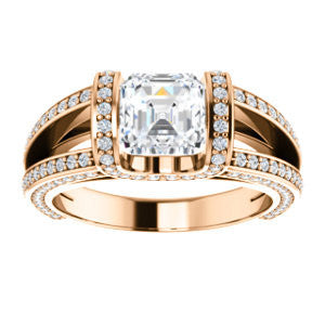 Cubic Zirconia Engagement Ring- The Scarlett (Asscher Cut with Prong-Accented Bar Basket and Split Pavé Band)