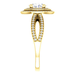 Sneaky women have subtly influenced their innocent boyfriends to propose with this cathedral-set, double-halo, split-band-with-pavé engagement ring style for decades. About to 'pop the question'? We can imagine just what might be running through your mind, the many different thoughts both exciting and a little scary (if we're being completely honest). It probably didn't help your level of anxiety that we just planted the idea in your head that she planted the idea in your head that led to you being right here, right now, on The Shannan engagement ring's product page with your finger poised above the button for the click that will change your life forever. You did know how sneaky she could be...didn't you?