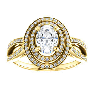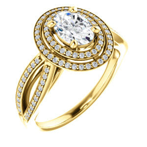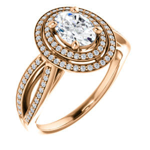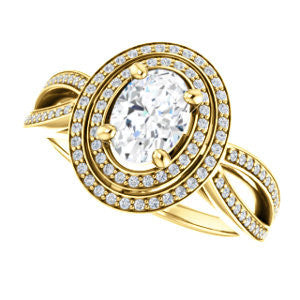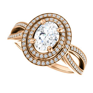 Cubic Zirconia Engagement Ring- The Shannan (Customizable Cathedral-set Oval Cut 2x Halo with Split-Pavé Band)