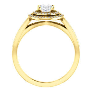 Center Stone Shape: Oval Cut (as pictured). See this customizable ring set with other available center stone shapes here: customize setting.