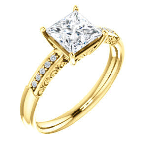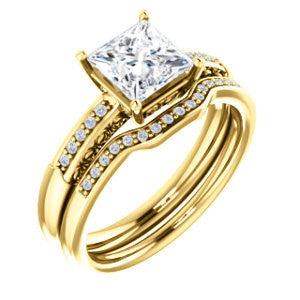 Center Stone Shape: Princess Cut (as pictured). See this customizable ring set with other available center stone shapes here: customize setting.