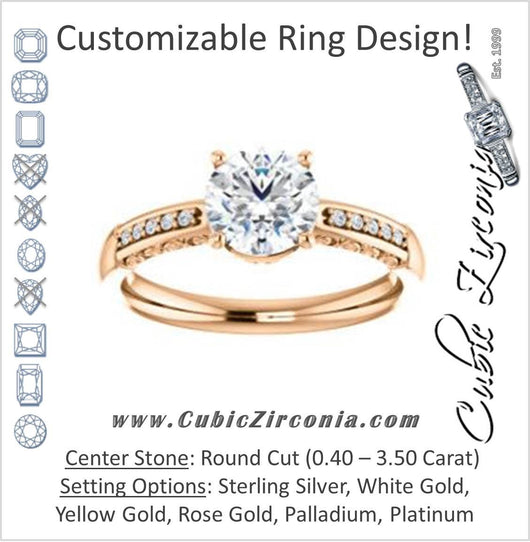 Cubic Zirconia Engagement Ring- The Shantya (Customizable 11-stone Round Cut Design with Round Accents & Delicate Filigree)