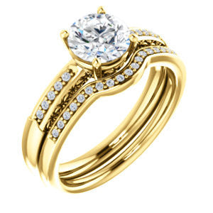 Center Stone Shape: Round Cut (as pictured). See this customizable ring set with other available center stone shapes here: customize setting.