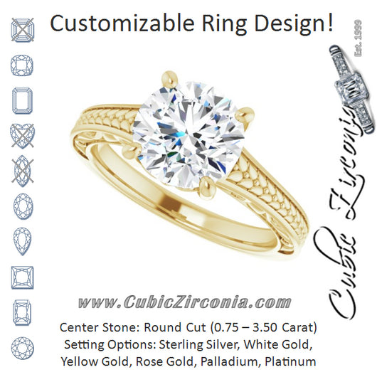 Cubic Zirconia Engagement Ring- The Shariya (Customizable Round Cut Solitaire with Organic Textured Band and Decorative Prong Basket)