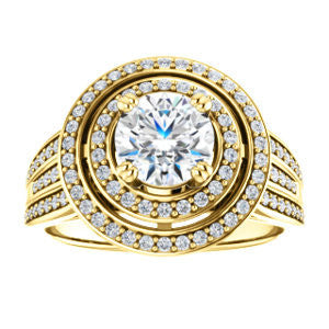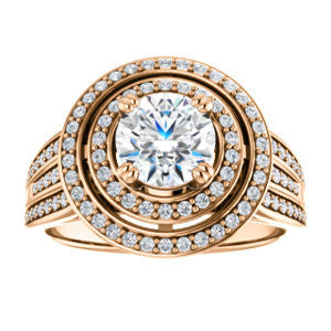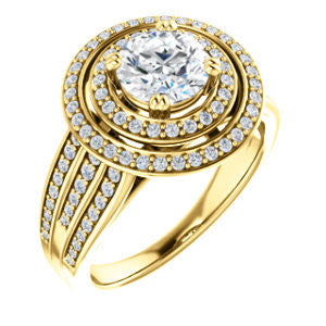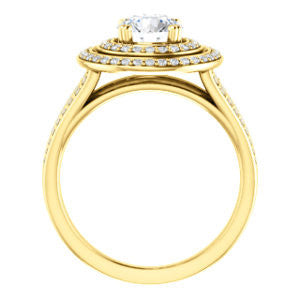 Cubic Zirconia Engagement Ring- The Shay (Customizable Round Cut Ultra-wide w/ Double-Halo and Triple-Pavé Band)