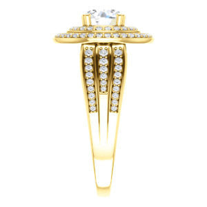 * The exact dimensions and number of side stones (including accent, pave, or halo stones) and/or the total carat weight (TCW) of your ring will vary up or down depending on your choice of any customizable options for center stone shape or carat size and finger ring size.