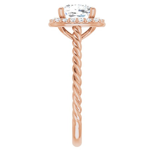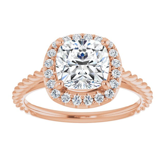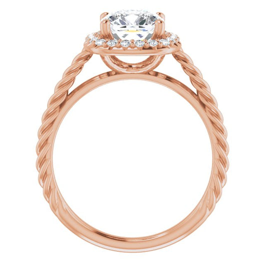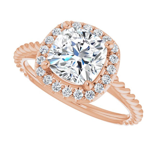 10K Rose Gold Customizable Cathedral-set Cushion Cut Design with Halo and Twisty Rope Band