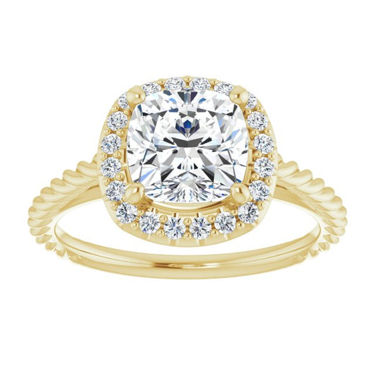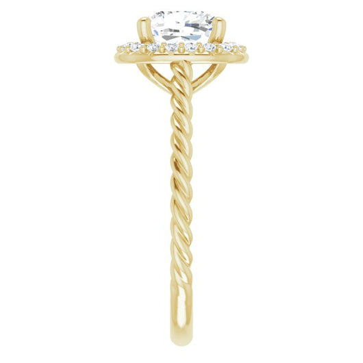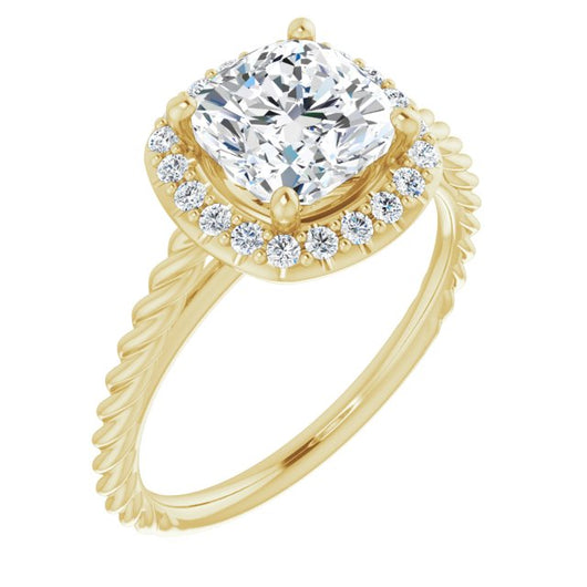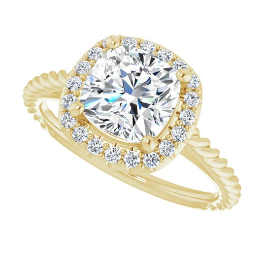 10K Yellow Gold Customizable Cathedral-set Cushion Cut Design with Halo and Twisty Rope Band