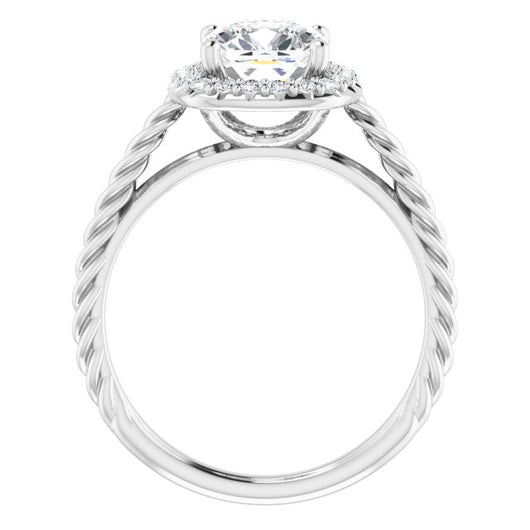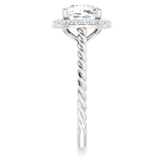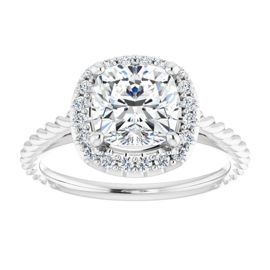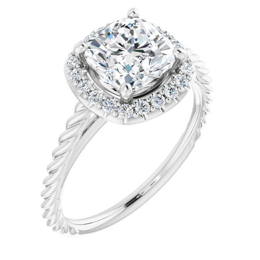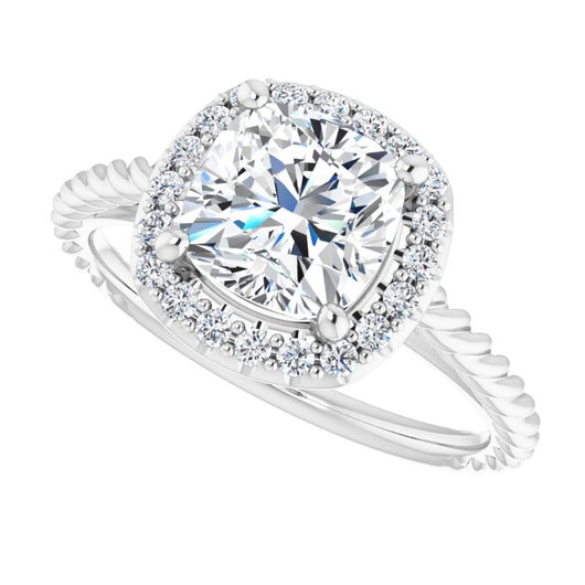 10K White Gold Customizable Cathedral-set Cushion Cut Design with Halo and Twisty Rope Band
