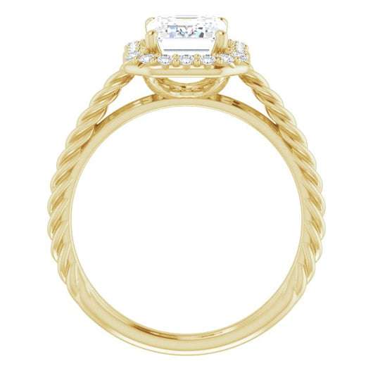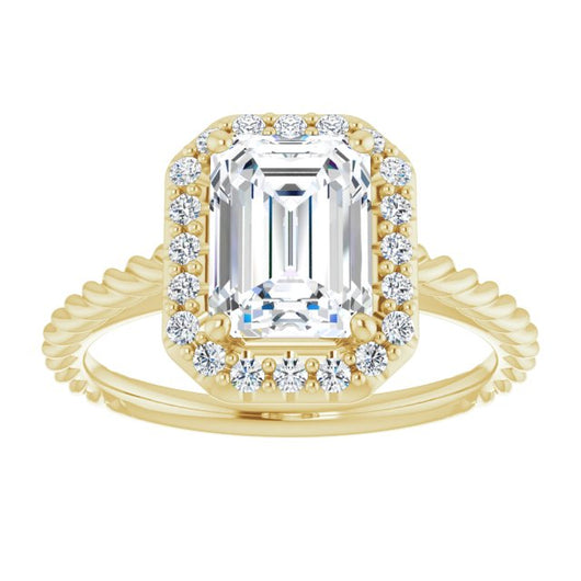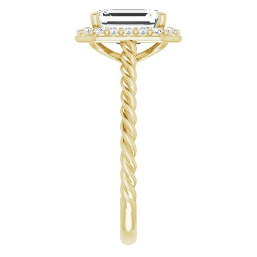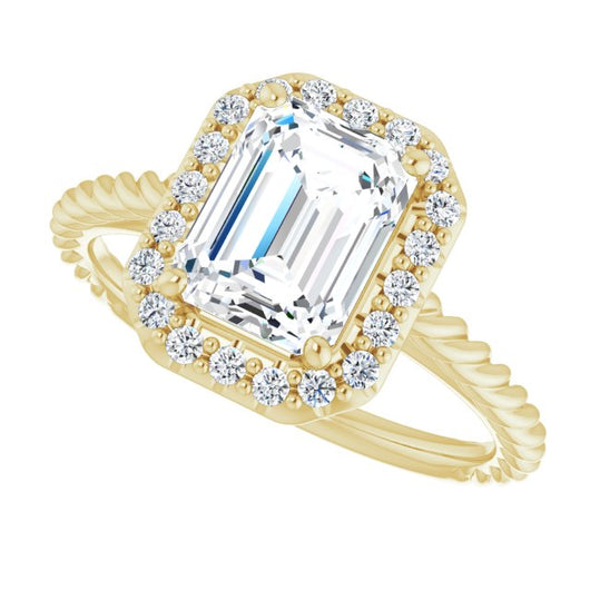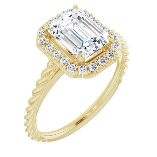 10K Yellow Gold Customizable Cathedral-set Emerald/Radiant Cut Design with Halo and Twisty Rope Band
