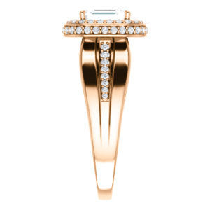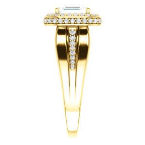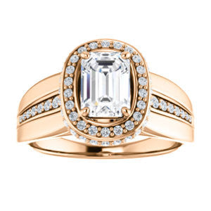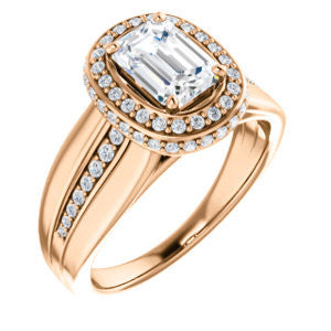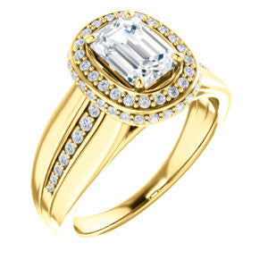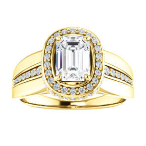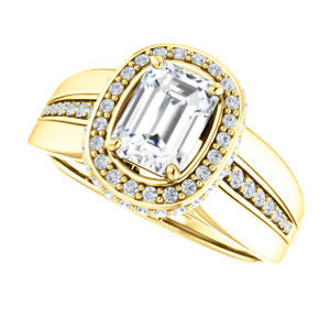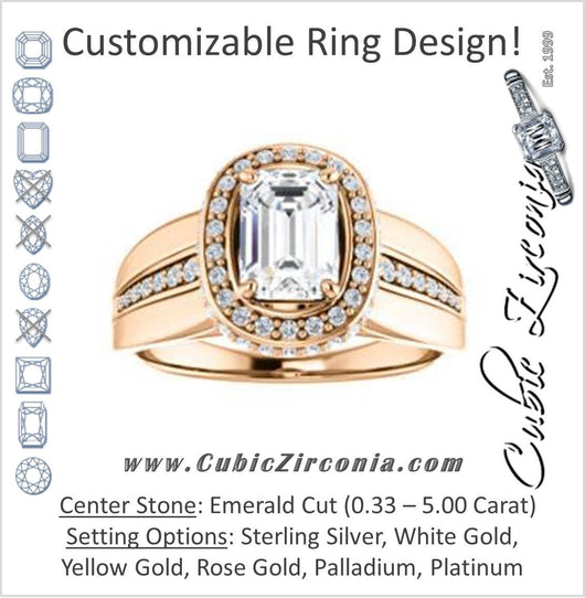 Cubic Zirconia Engagement Ring- The Siri (Customizable Emerald Cut Design featuring Halo & Underhalo Plus Wide Accented Band)