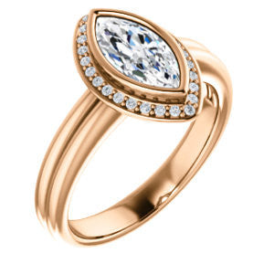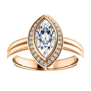 Cubic Zirconia Engagement Ring- The Sloan (Bezel Style Halo and Customizable Marquise Cut Center Stone)