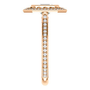 Her easy smile could stop a man’s heart. She influences men less with her looks than with that mega-watt smile, a touch of silliness, and an ability to be present in any moment without feeling self-conscious. Assuming she agreed not to direct it right at you-- and cause your untimely death-- what would you pay for the engagement ring that makes her smile? Chances are, whatever the amount, we're offering this customizable-center-setting Cubic Zirconia beauty for much less! The Sydney Ava features sixty-six (66)* round side stone CZ accents, with about half each set in a beautiful pavé band, and twinkling in a geometric halo around the cathedral-raised, bezel-set center stone.