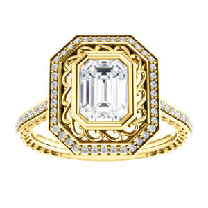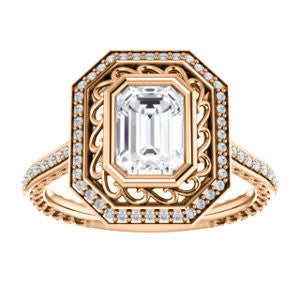 Center Stone Shape: Radiant Cut (as pictured with Emerald cut ). See this customizable ring set with other available center stone shapes here: customize setting.