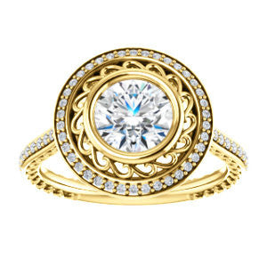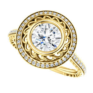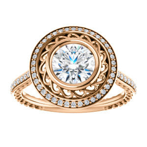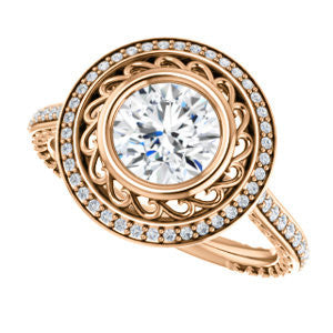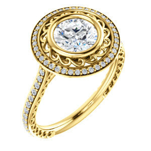Cubic Zirconia Engagement Ring- The Sydney Ava (Customizable Cathedral-Bezel Round Cut Filigreed Design with Halo & Pavé Accents)