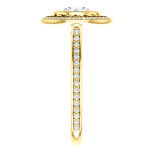 * The exact dimensions and number of side stones (including accent, pave, or halo stones) and/or the total carat weight (TCW) of your ring will vary up or down depending on your choice of any customizable options for center stone shape or carat size and finger ring size.